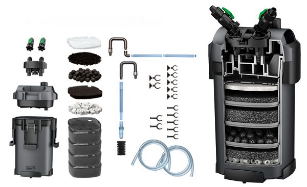 Загрязненная аквариумная вода очищается благодаря 5 различным видам фильтрующих наполнителей. Вода проходит через керамические кольца, биошарики, традиционную губку, угольный наполнитель и волокнистую прокладку, которые удаляют различные частицы грязи и обеспечивают биологическую, механическую и химическую фильтрацию. Очистка фильтра и замена наполнителей облегчается наличием удобных ручек на каждой из фильтрующих корзин. Сливная трубка и шланг могут быть легко отрегулированы под любой размер аквариума. Вентили, установленные на входе и выходе воды, позволяют точно настроить ее поток в соответствии с конкретными требованиями. Для очистки просто полностью закройте вентили, после чего отсоедините адаптер от самого фильтра. При этом вода остается в шлангах, что позволяет не выполнять ее повторную подкачку при следующем подключении фильтра.