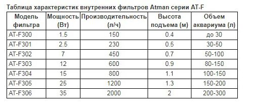 КОМПЛЕКТАЦИЯ ФИЛЬТРА (Модели внутренних фильтров Atman серии AT-F300 образуют вторую группу. Аквариумные фильтры этой серии выполнены на базе аквариумных помп Atman серии AT-300):