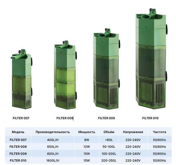 Фильтр прост в сборке и обслуживании, поэтому подойдет как новичкам, так и опытным аквариумистам, а его секционное строение обеспечит многоуровневую фильтрацию и долговременную чистоту и прозрачность воды в аквариуме.
