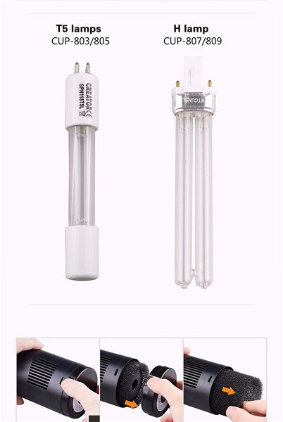 Большая губка осуществляет механическую фильтрацию, которая способствует более продолжительному и эффективному воздействию ультрафиолетового излучения на проходящую через фильтр воду. Конструкция ультрафиолетового стерилизатора для аквариума сделана таким образом, что он не нуждается в дополнительном насосе, так как он уже оснащен встроенным насосом, который подает воздух методом инжекции.