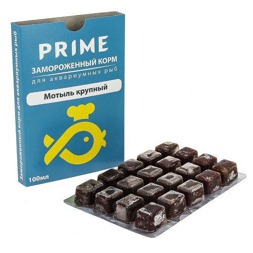 Мотыль. Один из самых популярных кормов. Используется для большинства видов рыб в качестве основного корма. Особенно нужен американским цихлидам, карпозубым, харациновым и карповым рыбам. По сравнению с живым мотылем, продукция PRIME гарантированно обеззаражена.